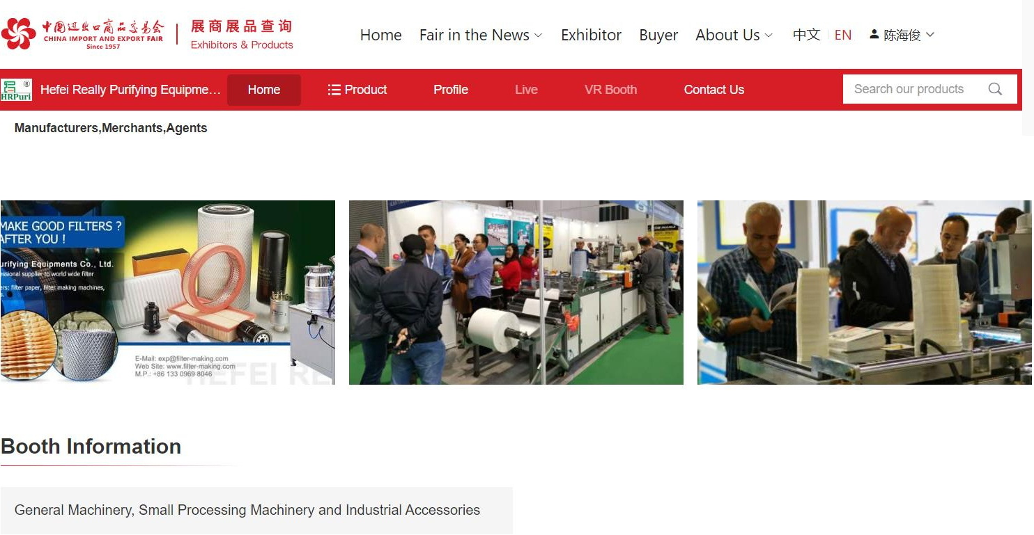 Nous assistons à la 132e Foire de Canton en tant qu'exposant, présentons nos machines aux fabricants de filtres du monde entier.